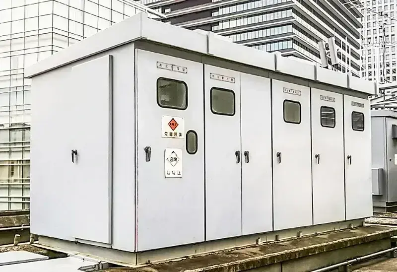 変電所から送られてくる高圧の電気を、施設内で使える電圧に変換する設備です。大型の施設で必要になります。